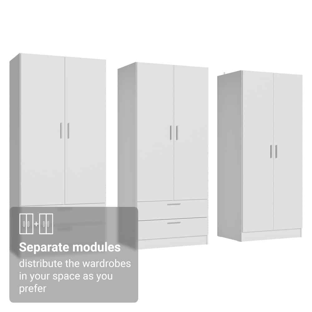 Ce placard contemporain en finition blanche apporte une touche élégante et s’intègre parfaitement dans une chambre parentale ou un studio moderne. L’ajout d’un espace modulable assure une décoration raffinée.