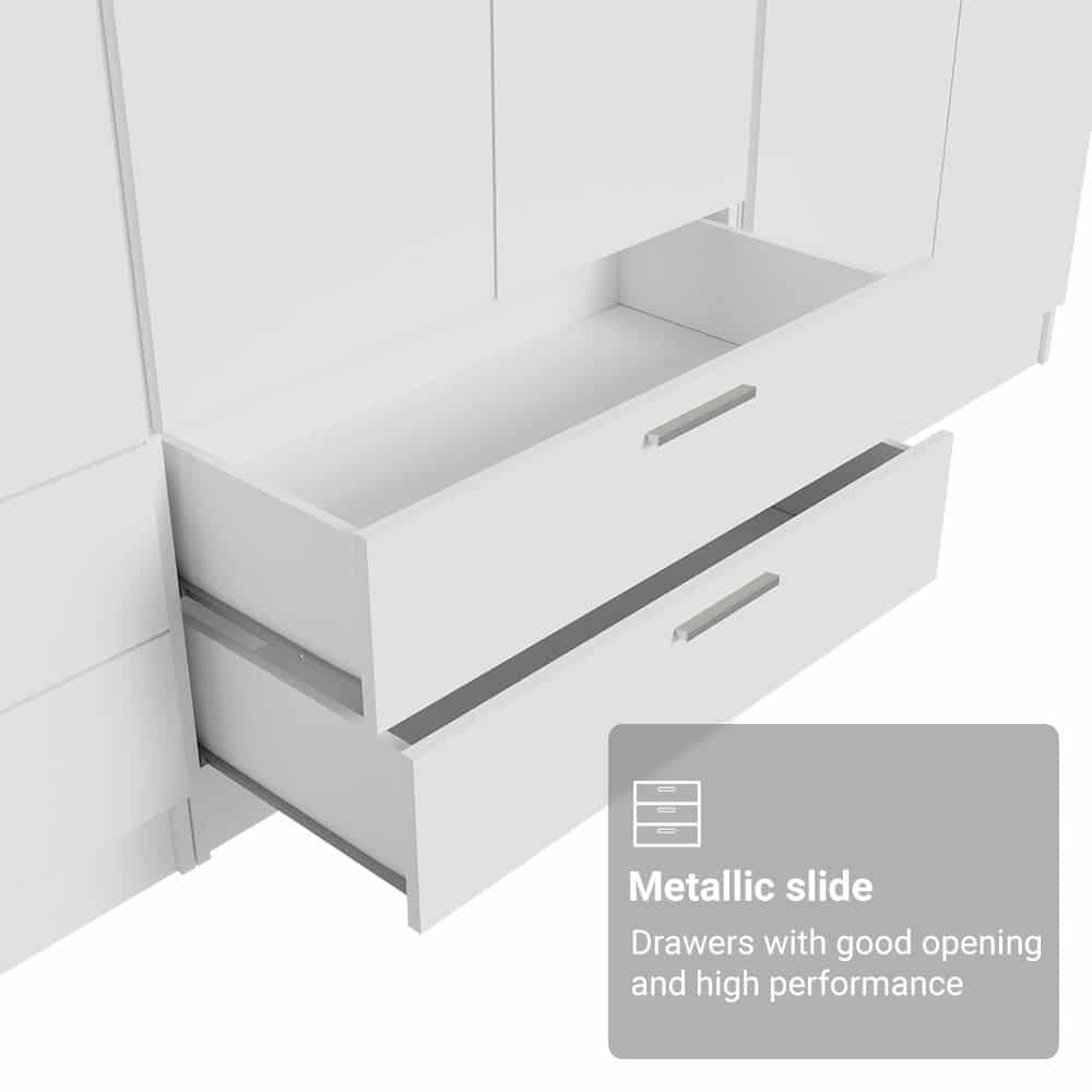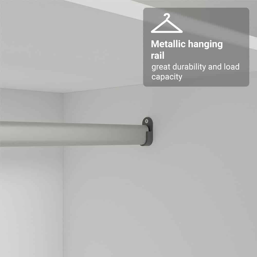 La penderie est équipée de tringles métalliques solides et durables pour accueillir vos vêtements en toute sécurité. La modularité du dressing 6 portes en fait une option moderne parfaite pour tout espace en Tunisie.